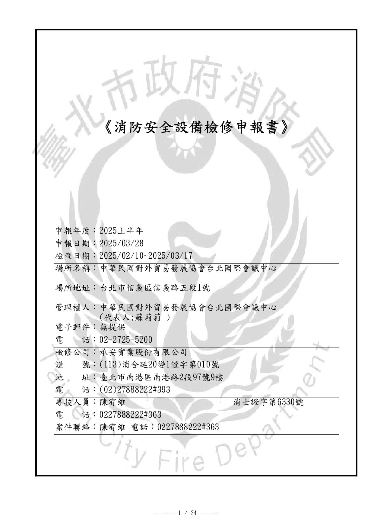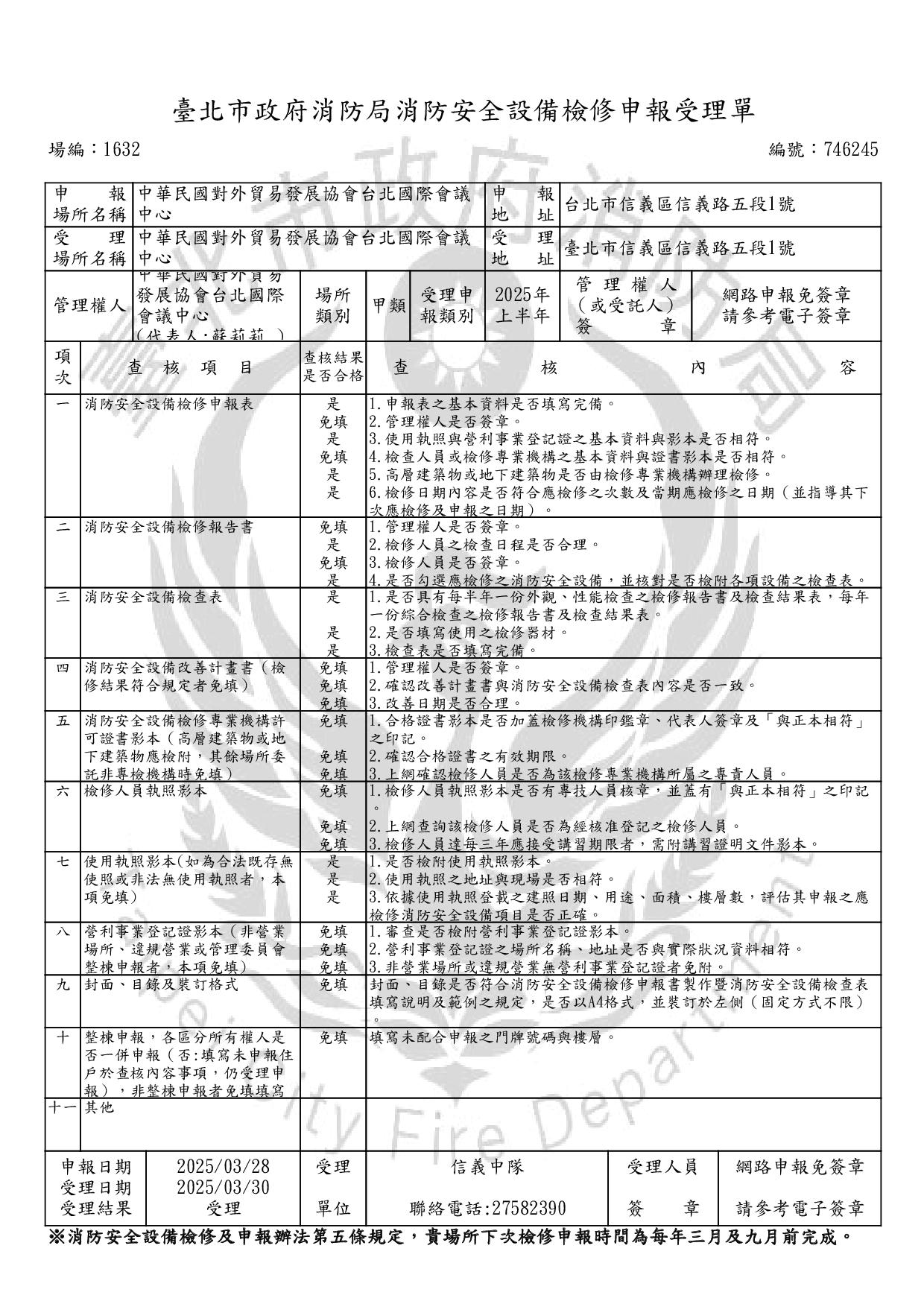2.臺北市政府消防局消防安全設備檢修申報受理單